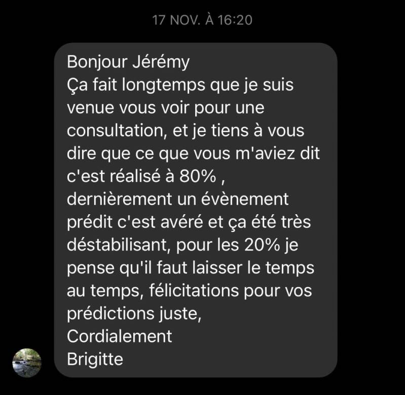 Ce qui distingue Jeremy des autres médiums, c'est la singularité de son parcours et la richesse de ses expériences. Son approche est empreinte de précisions, offrant une guidance claire et des réponses éclairantes. Il a développé une sensibilité et une intuition exceptionnelles, faisant de chaque séance une expérience authentique et personnalisée.